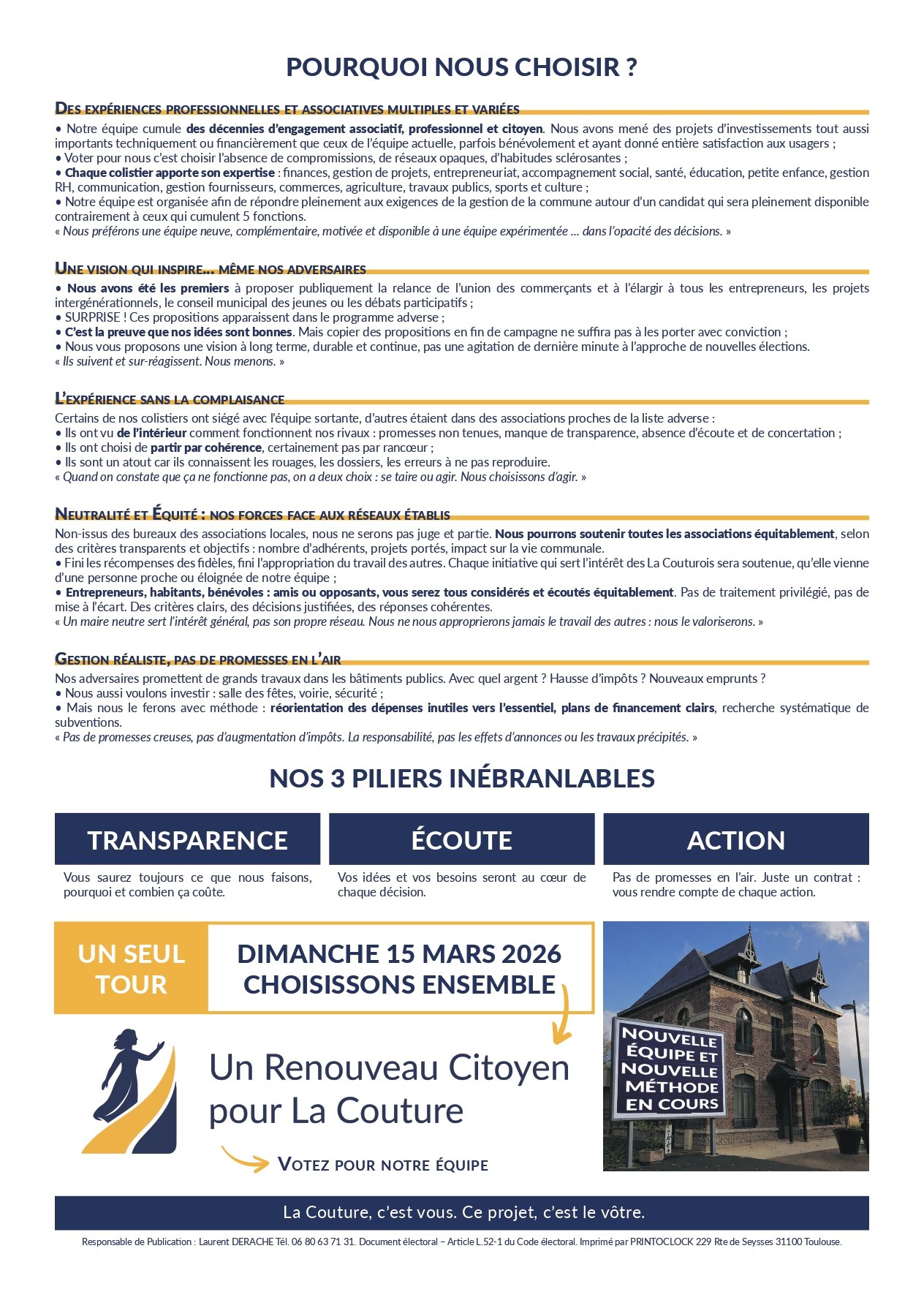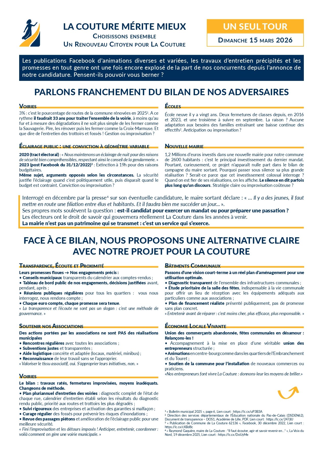 Tract construit pour la liste “Un Renouveau Citoyen pour a Couture” – Élections municipales 2026